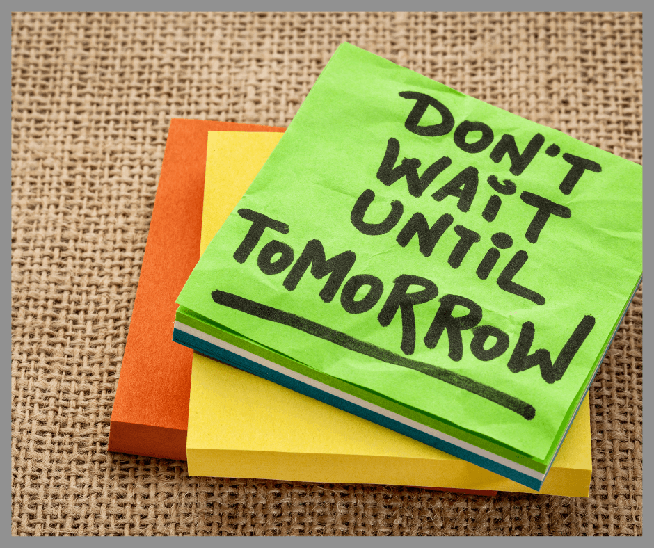 Keep in mind the wisdom of the old saying; never put off until tomorrow what you can do today.